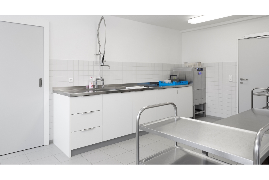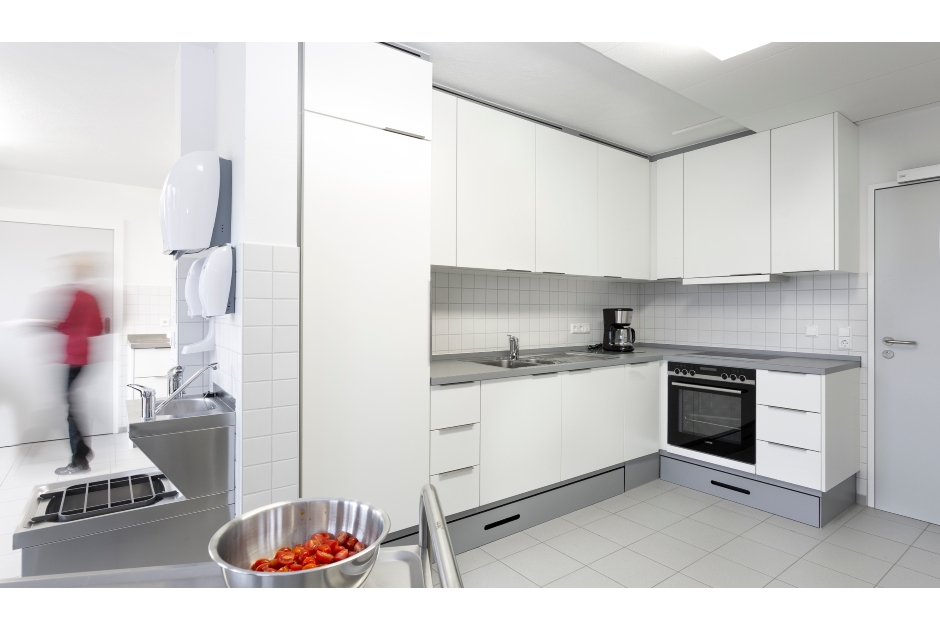 Der bestehende Kindergarten Herrenäcker wird ganztagesfähig umgebaut und renoviert. Der ehemalige Bewegungsraum wird zum Kinderbistro mit Cook & Freeze Küche.