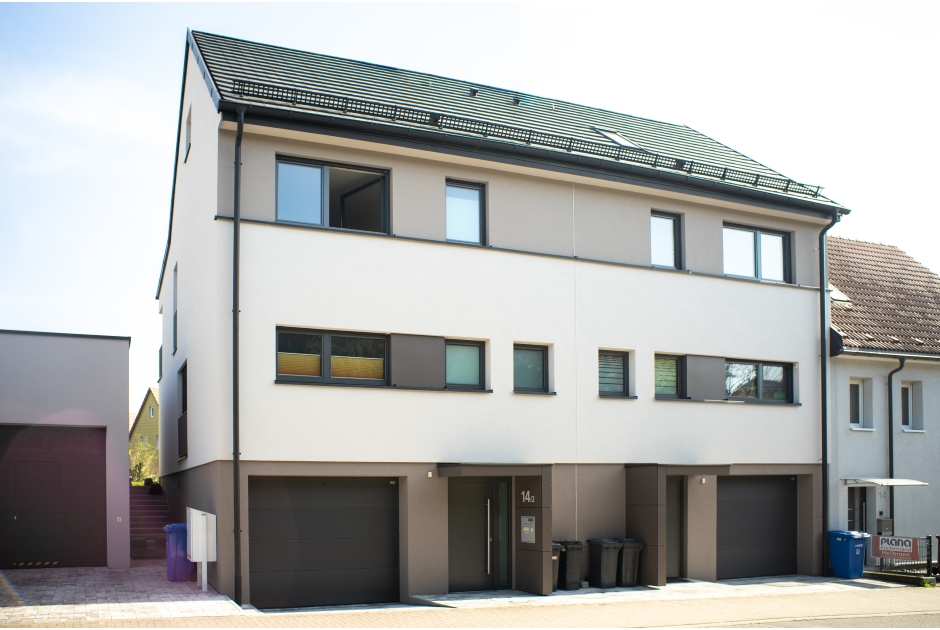 Während sich das Gebäude zu Straßenseite aber geschlossen zeigt, öffnen sich die Wohnräume zur Gartenseite hin.