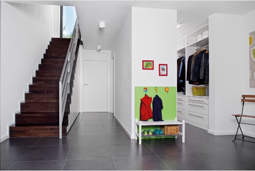 Im Dachgeschoss trennt diese den Schlafbereich der Eltern von dem der Kinder.